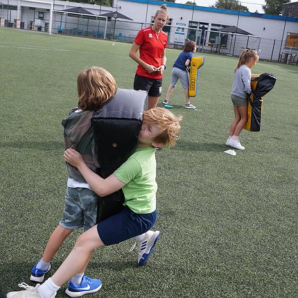Leuk: luisteren naar de kinderen en geef hun inspraak (op sommige tijdstippen mogen de kinderen zelf kiezen aan welke sport ze deelnemen). Natuurlijk voor de aller jongsten begeleiden de monitors deze keuze.